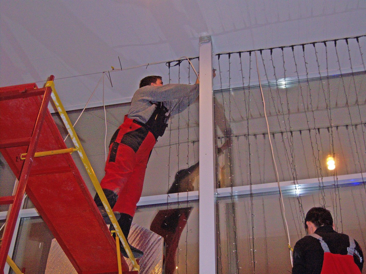 Монтаж гирлянды светового дождя (световой занавес) в ДК Химик